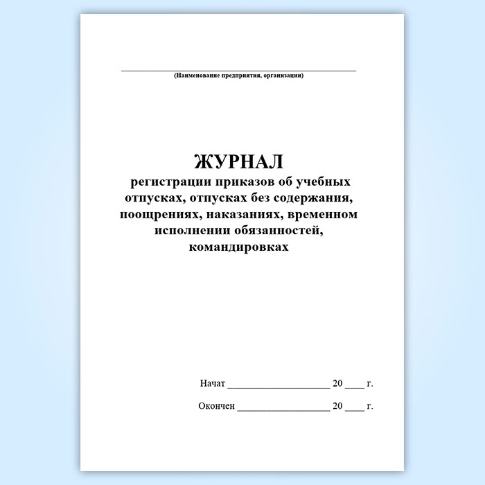 Журнал регистрации приказов об учебных отпусках, отпусках без содержания, поощрениях, наказаниях, временном исполнении обязанностей, командировках в Чите купить