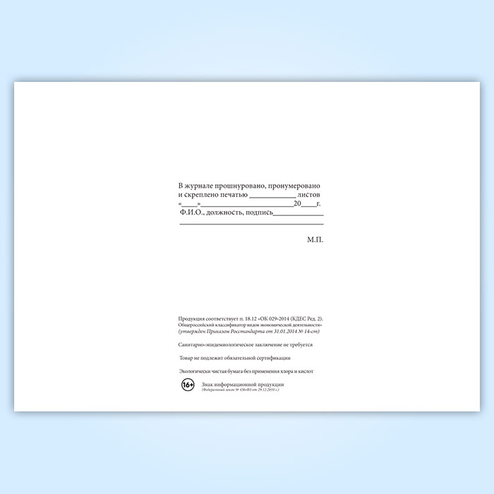 Вы получаете печатную продукцию прошнурованной и c местом для вашей печати в соответствии с действующими нормативными документами: