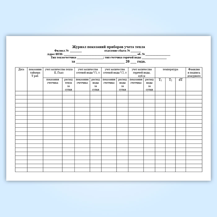 Журнал учета тепловой энергии и теплоносителя в водяных (паровых) системах теплопотребления в Чите купить