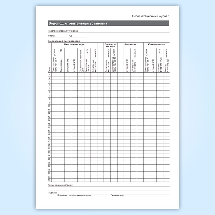 Сменный журнал водоподготовительной установки с Н-катионитными фильтрами в Чите купить