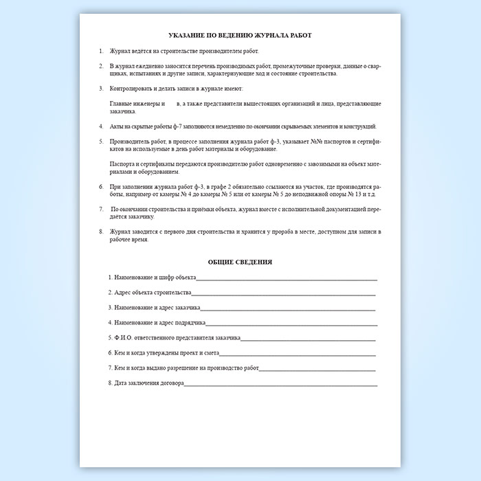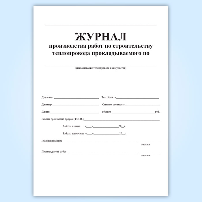 Журнал производства работ по строительству теплопровода в Чите купить