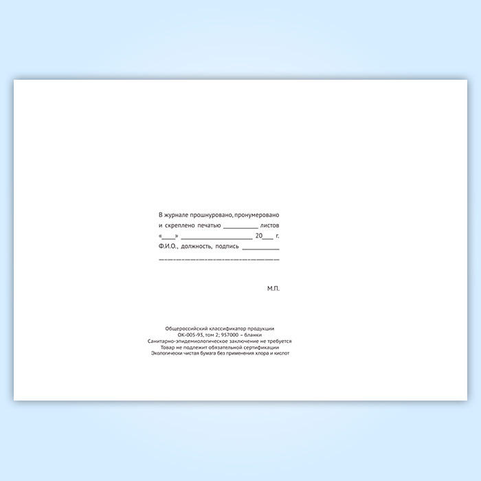 Вы получаете печатную продукцию прошнурованной и c местом для вашей печати в соответствии с действующими нормативными документами: