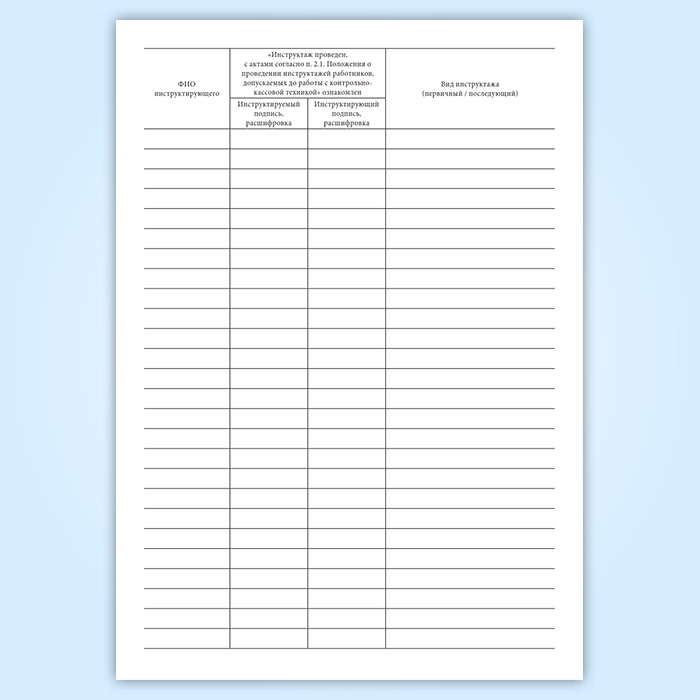 Журнал учета проведения инструктажей работников, допускаемых до работы с контрольно-кассовой техникой в Чите купить