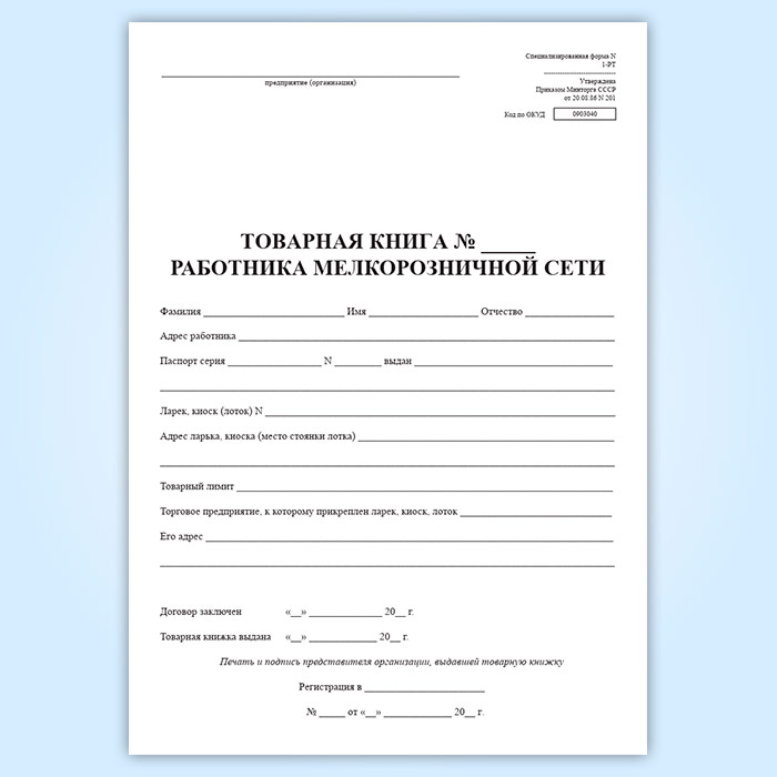 Товарная книга работника мелкорозничной сети. Специализированная (форма № 1-РТ) в Чите купить