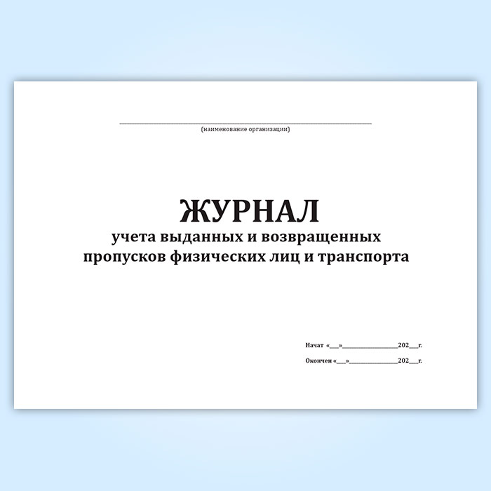 Журнал учета выданных и возвращенных пропусков физических лиц и транспорта в Чите купить