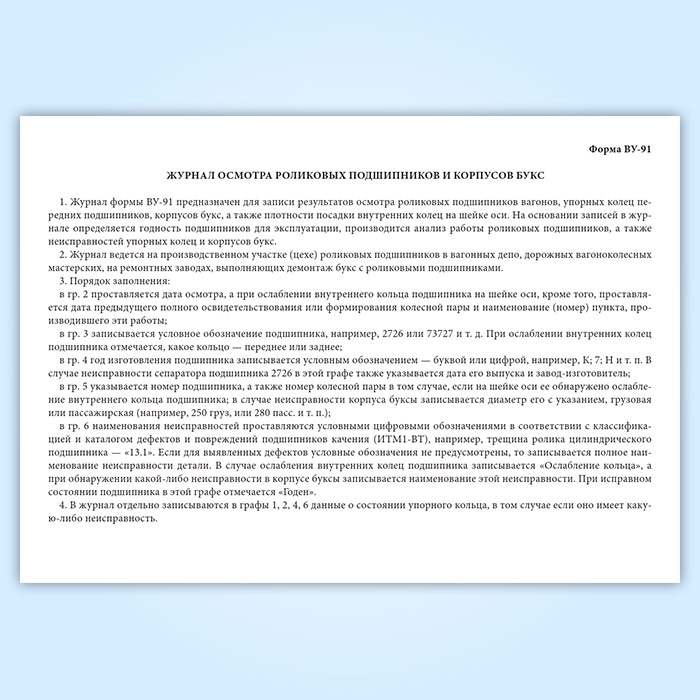 Журнал осмотра роликовых подшипников и корпусов букс (форма ВУ-91) в Чите купить