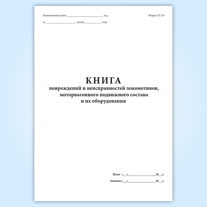 Книга повреждений и неисправностей локомотивов, моторвагонного подвижного состава и их оборудования (форма ТУ-29) в Чите купить