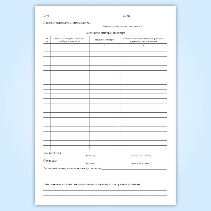 Журнал осмотра эскалатора в Чите купить