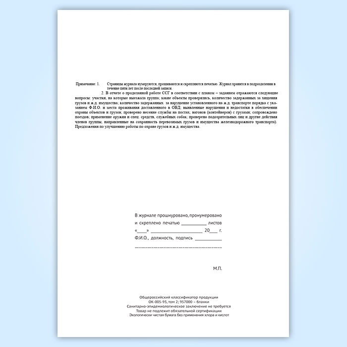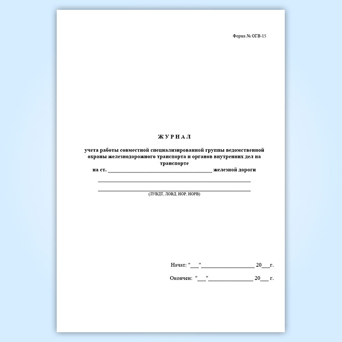 Журнал учета работы совместной специализированной группы ведомственной охраны железнодорожного транспорта и органов внутренних дел на транспорте (форма № ОГВ-15) в Чите купить