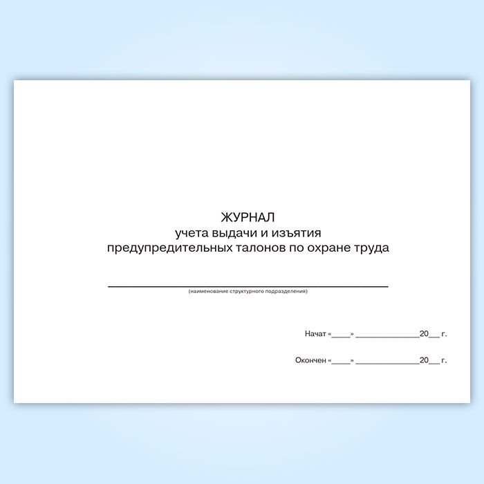 Журнал учета выдачи и изъятия предупредительных талонов по охране труда в Чите купить