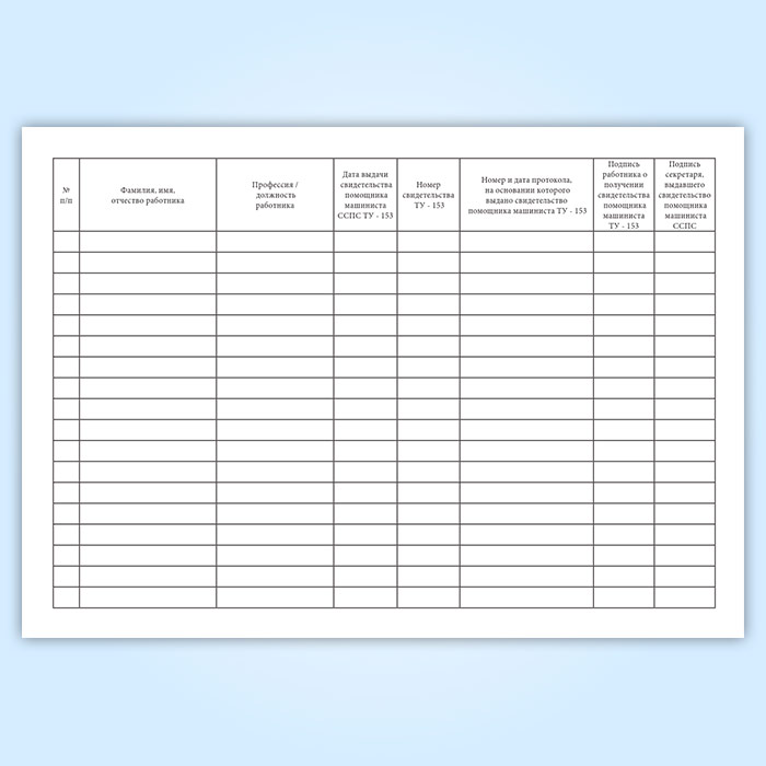 Журнал выдачи и регистрации удостоверений помощника машиниста ССПС (форма ТУ-153) в Чите купить