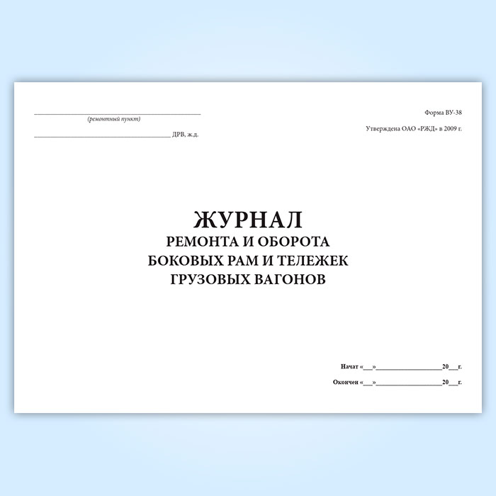 Журнал ремонта и оборота боковых рам и тележек грузовых вагонов (форма ВУ-38) в Чите купить