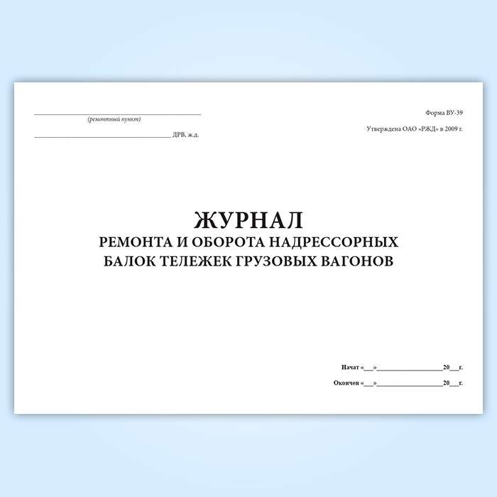 Журнал ремонта и оборота надрессорных балок тележек грузовых вагонов (форма ВУ-39) в Чите купить