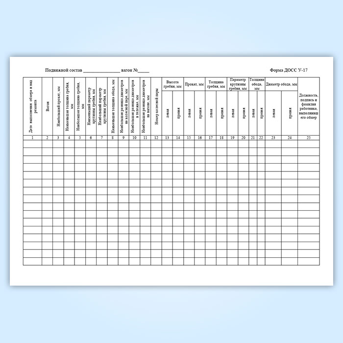Книга состояния колесных пар скоростных/высокоскоростных электропоездов (форма ДОСС У-17) в Чите купить