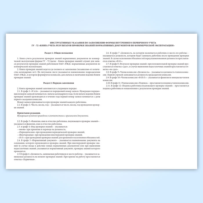 Книга учета результатов проверки знаний нормативных документов по коммерческой эксплуатации (форма ГУ-72) в Чите купить