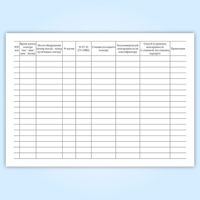 Книга регистрации коммерческих неисправностей вагонов в поездах в пунктах коммерческого осмотра (форма ГУ-98ВЦ) в Чите купить