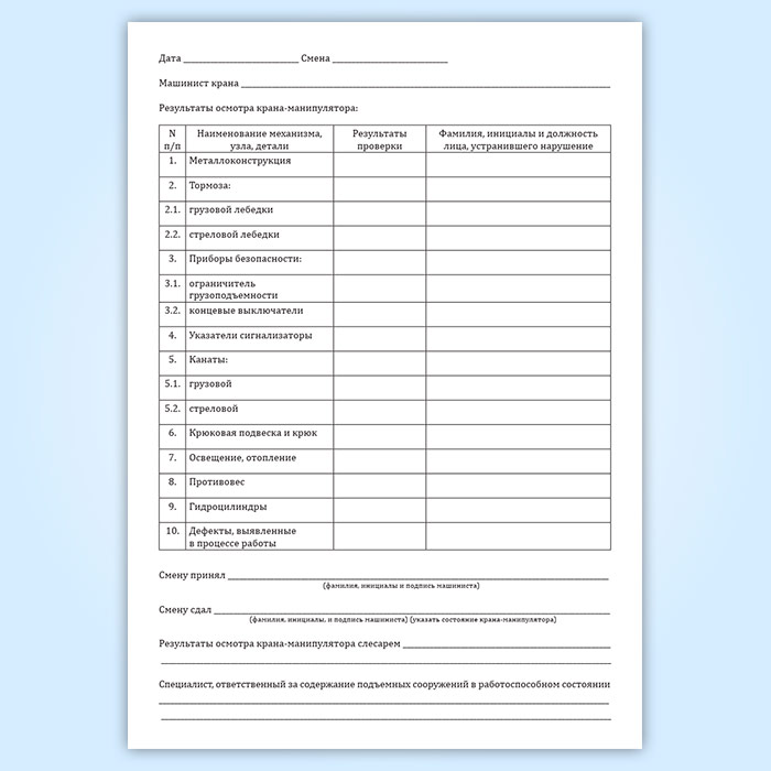 Вахтенный журнал машиниста грузоподъемного крана-манипулятора в Чите купить