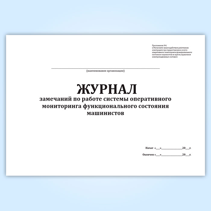Журнал замечаний по работе системы оперативного мониторинга функционального состояния машинистов в Чите купить