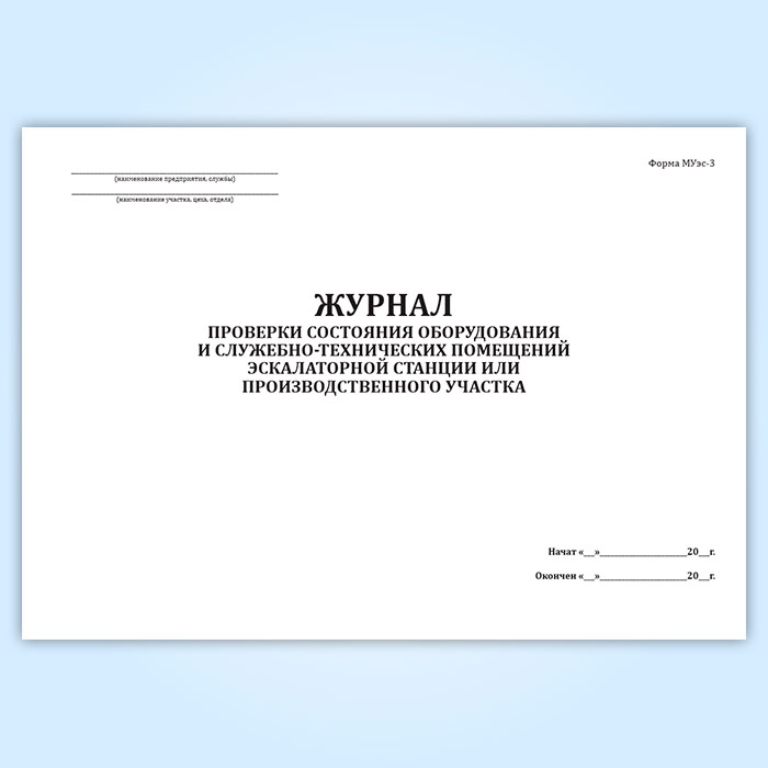 Журнал проверки состояния оборудования и служебно-технических помещений эскалаторной станции или производственного участка (форма МУэс-3) в Чите купить