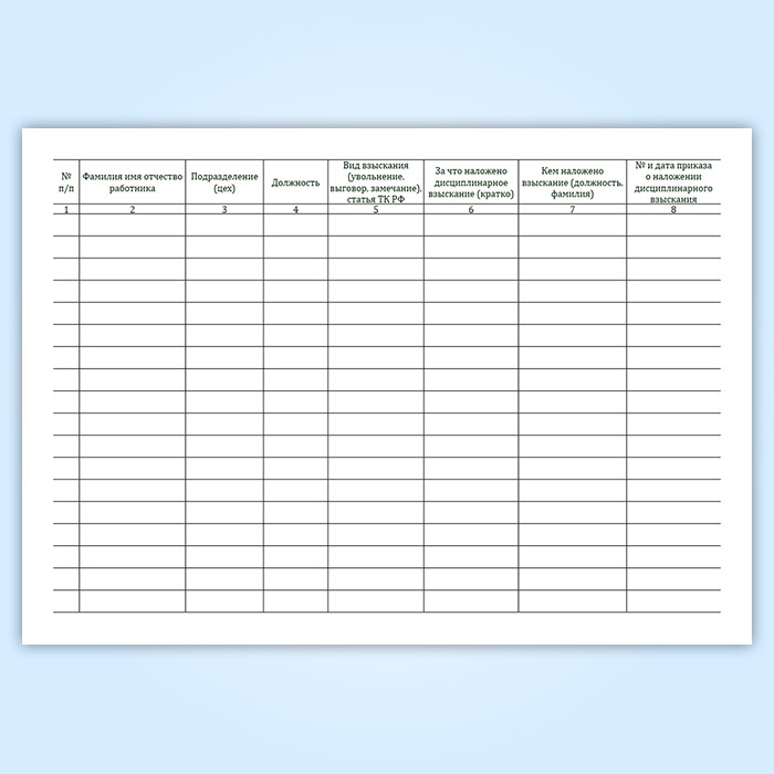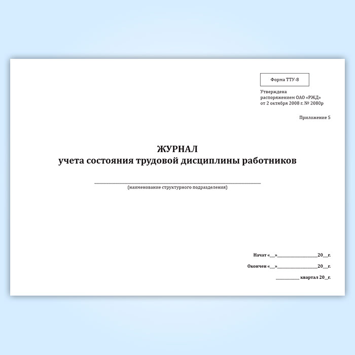 Журнал учета состояния трудовой дисциплины работников (форма ТТУ-8) в Чите купить
