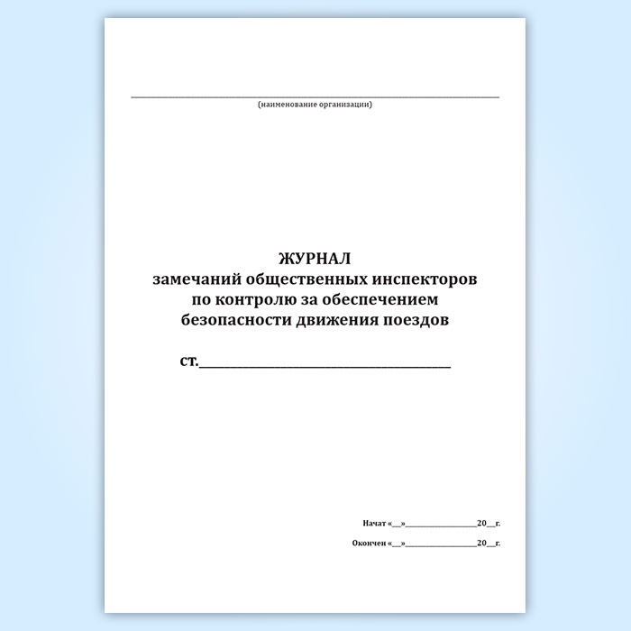 Журнал замечаний общественных инспекторов по контролю за обеспечением безопасности движения поездов в Чите купить