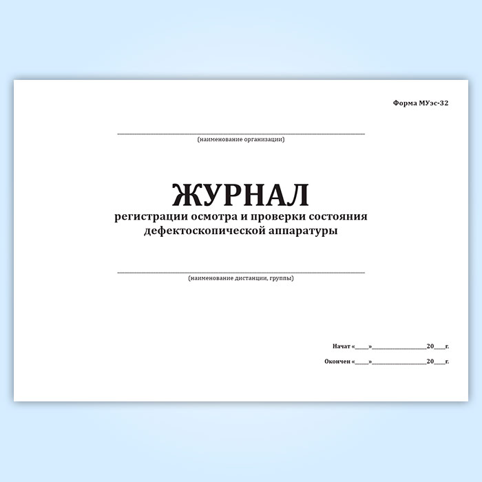 Журнал регистрации осмотра и проверки состояния дефектоскопической аппаратуры (форма МУэс-32) в Чите купить