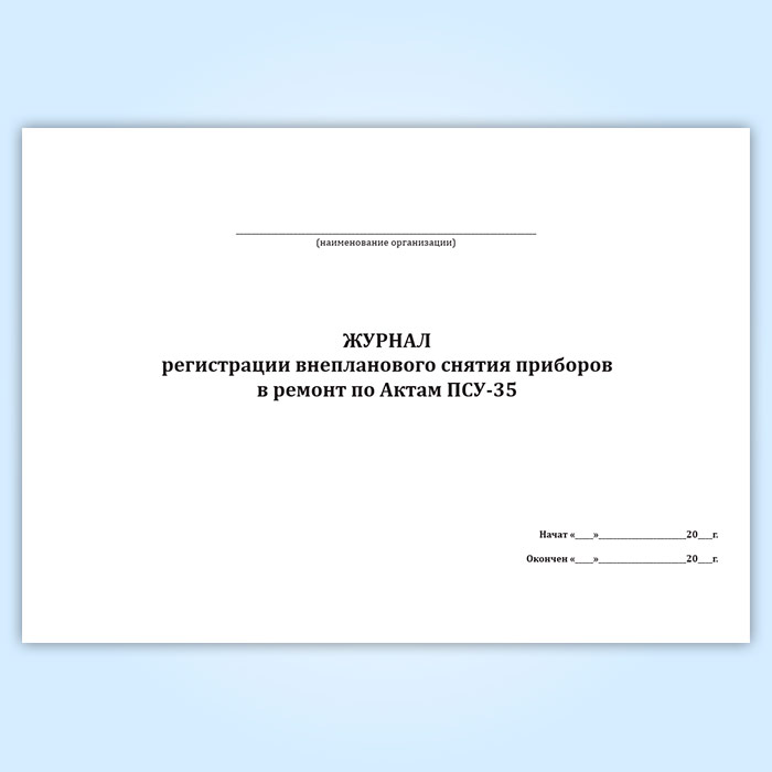 Журнал регистрации внепланового снятия приборов в ремонт по Актам ПСУ-35 в Чите купить