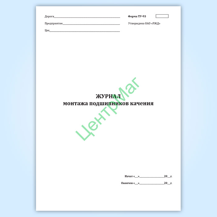 Журнал монтажа подшипников качения (форма ТУ-93) в Чите купить
