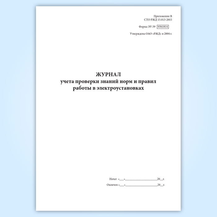 Журнал учета проверки знаний норм и правил работы в электроустановках (форма ЭУ-39) в Чите купить