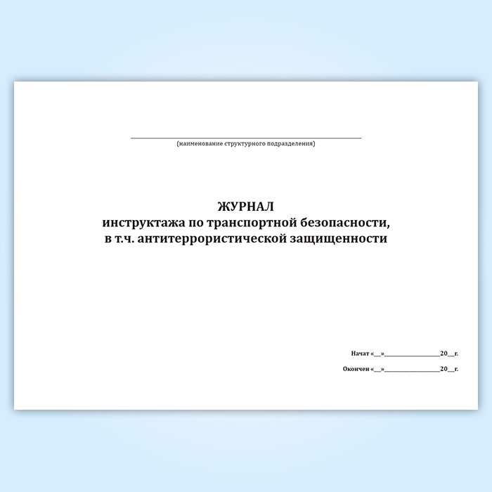 Журнал инструктажа по транспортной безопасности, в т.ч. антитеррористической защищенности в Чите купить