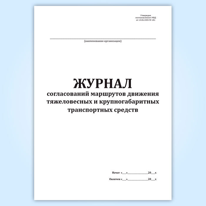 Журнал согласований маршрутов движения тяжеловесных и крупногабаритных транспортных средств в Чите купить