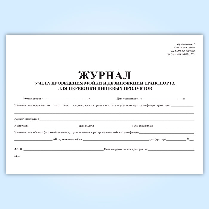Журнал учета проведения мойки и дезинфекции транспорта для перевозки пищевых продуктов в Чите купить