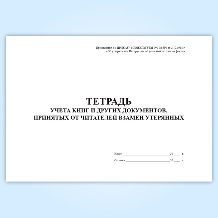 Тетрадь учета книг и других документов, принятых от читателей взамен утерянных в Чите купить