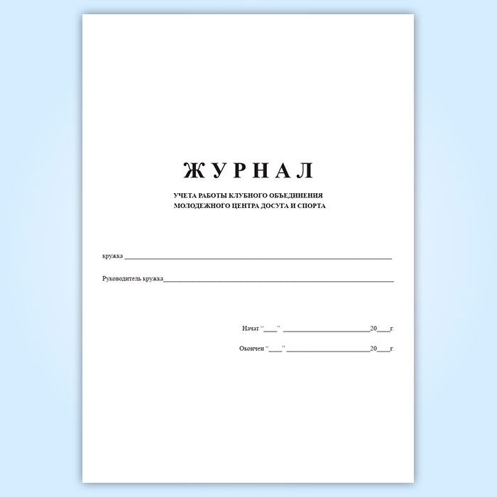 Журнал учета работы клубного объединения молодежного центра досуга и спорта в Чите купить