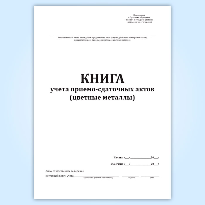 Книга учета приемо-сдаточных актов (цветные металлы) в Чите купить