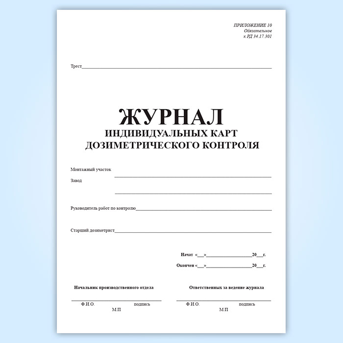 Журнал индивидуальных карт дозиметрического контроля (РД 34.17.301) в Чите купить