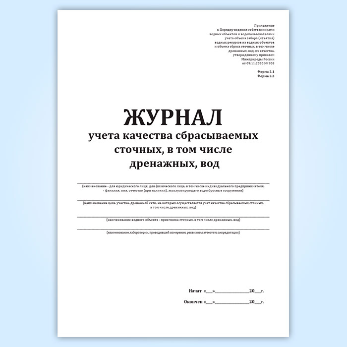 Журнал учета качества сбрасываемых сточных, в том числе дренажных, вод (форма 2.1, 2.2) в Чите купить