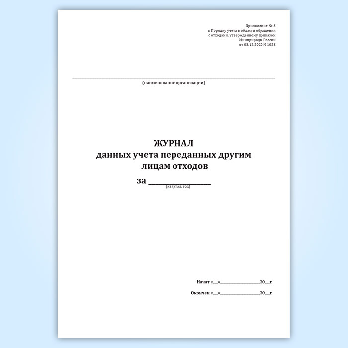 Журнал данных учета переданных другим лицам отходов в Чите купить