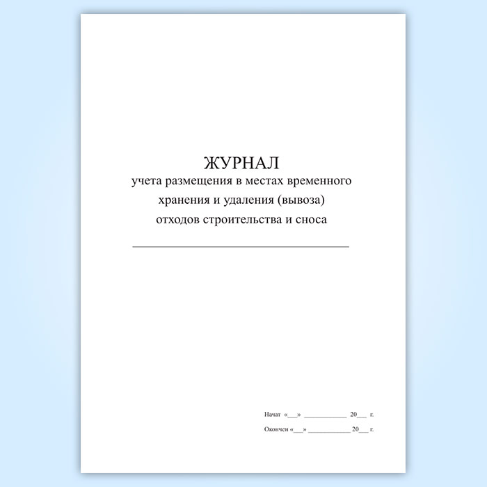 Журнал учета размещения в местах временного хранения и удаления (вывоза) отходов строительства и сноса в Чите купить
