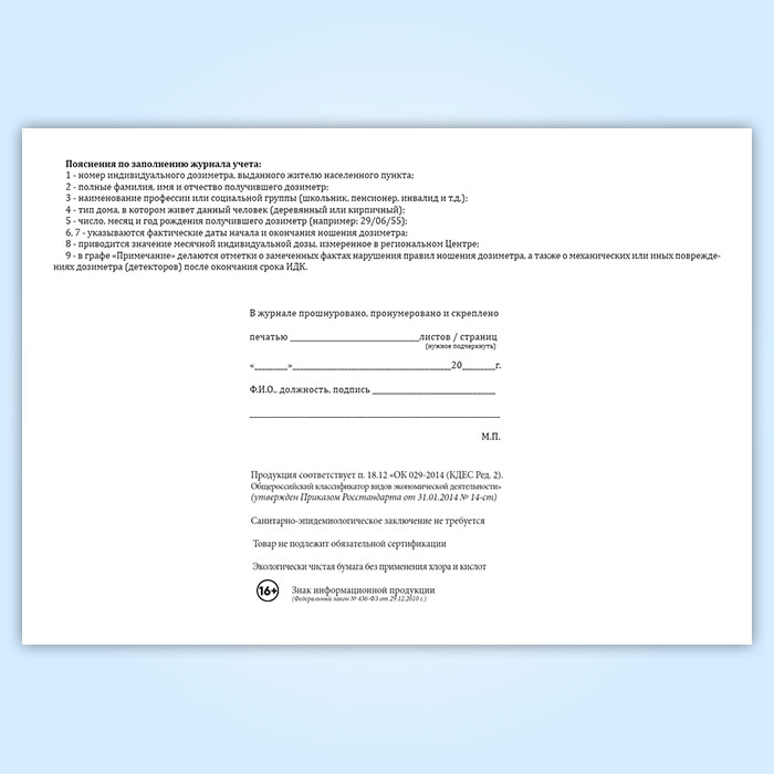 Журнал учета индивидуального дозиметрического контроля внешнего гамма-излучения в Чите купить
