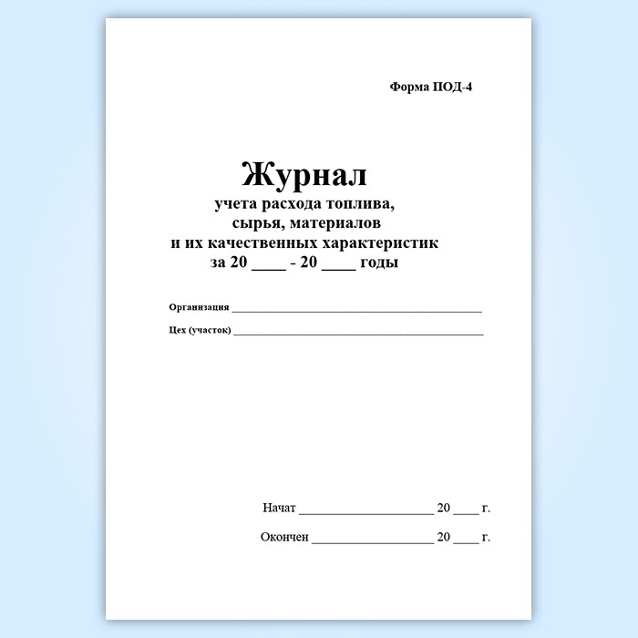 Журнал учета расхода топлива, сырья, материалов и их качественных характеристик (форма ПОД-4) в Чите купить
