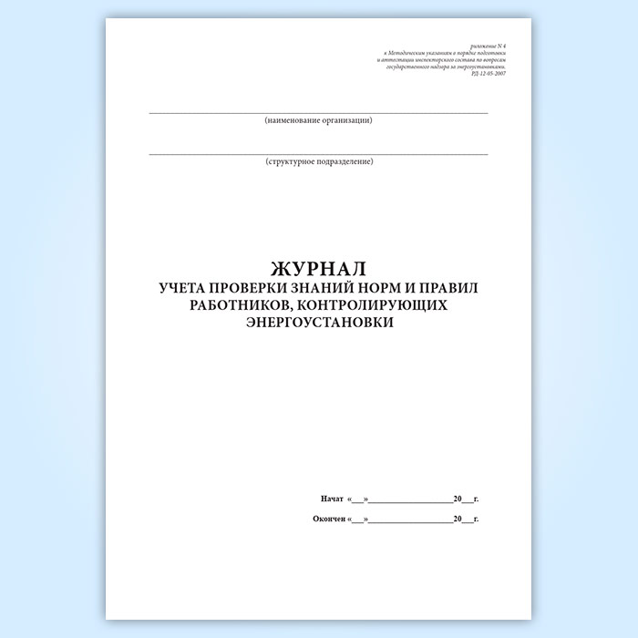 Журнал учета проверки знаний норм и правил работников, контролирующих энергоустановки в Чите купить