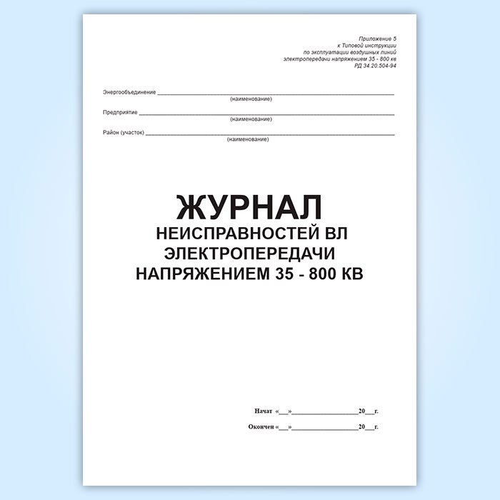Журнал учета работ на ВЛ электропередачи напряжением 35-800 квВ в Чите купить