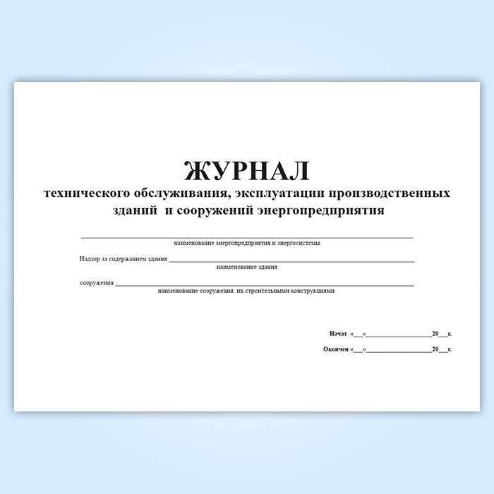 Журнал технического обслуживания, эксплуатации производственных зданий и сооружений энергопредприятия в Чите купить