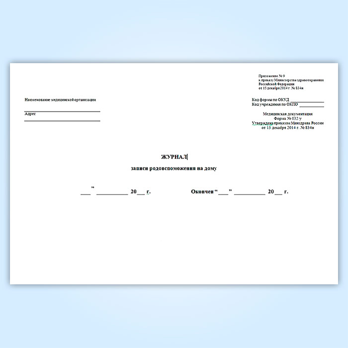 Журнал записи родовспоможения на дому (форма 032/у) в Чите купить
