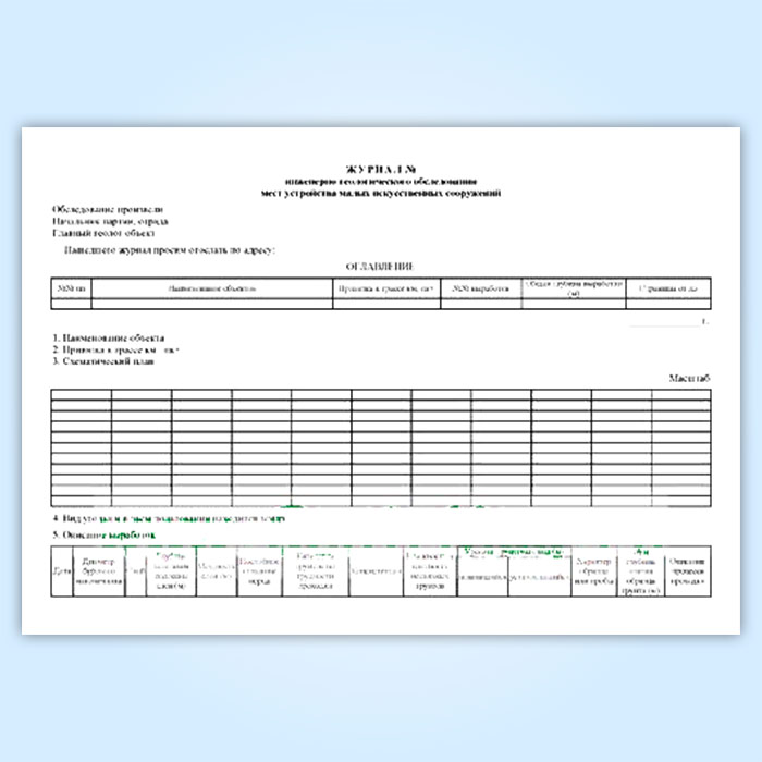 Журнал инженерно-геологического обследования мест устройства малых искусственных сооружений в Чите купить