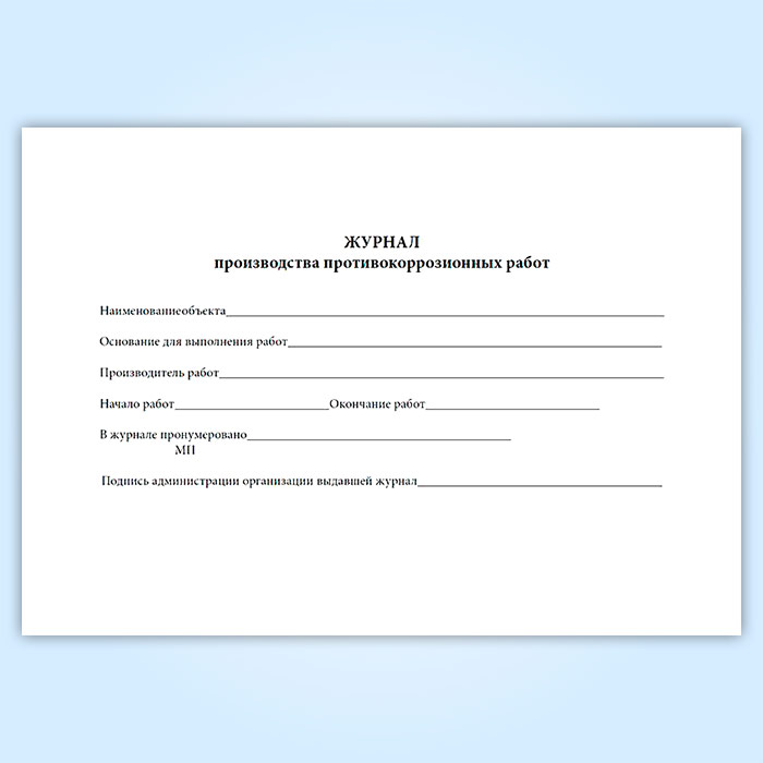 Журнал производства противокоррозионных работ в Чите купить