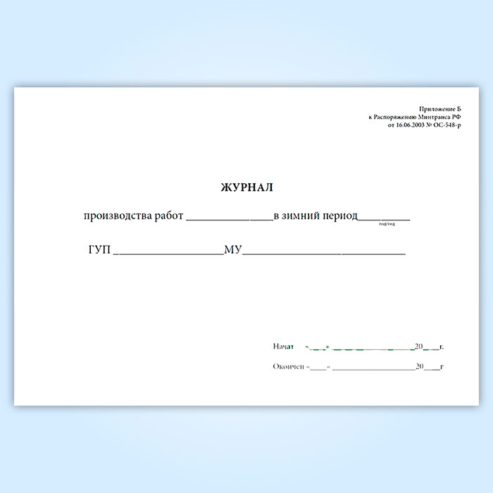 Журнал производства работ в зимний период, выполненных за время дежурства в Чите купить