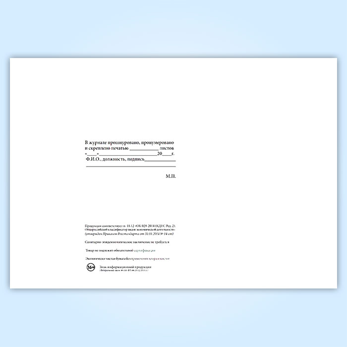Вы получаете печатную продукцию прошнурованной и c местом для вашей печати в соответствии с действующими нормативными документами: