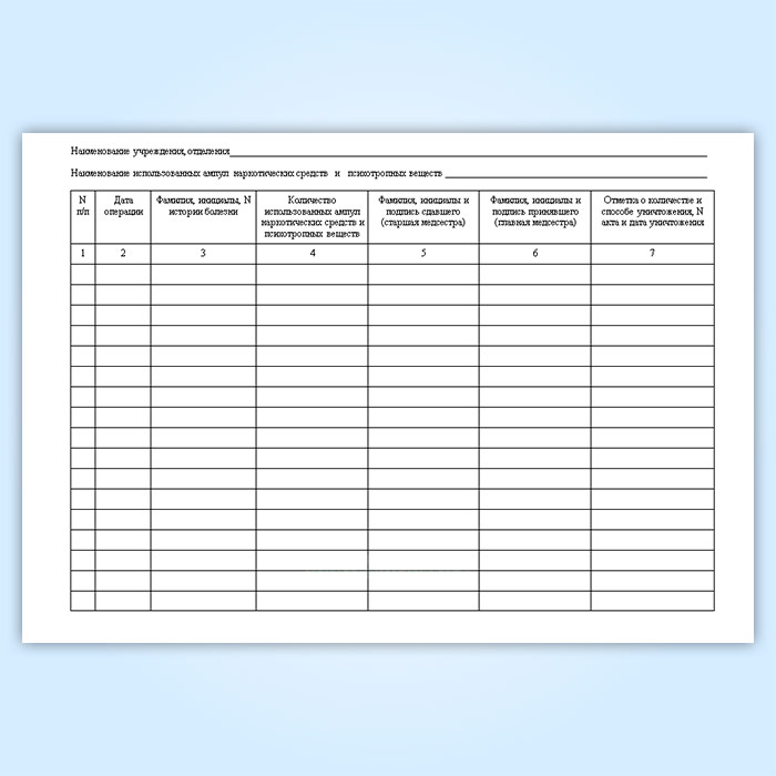 Журнал регистрации операций с использованными ампулами из-под наркотических средств и психотропных веществ у главной медицинской сестры стационарной медицинской организации в Чите купить